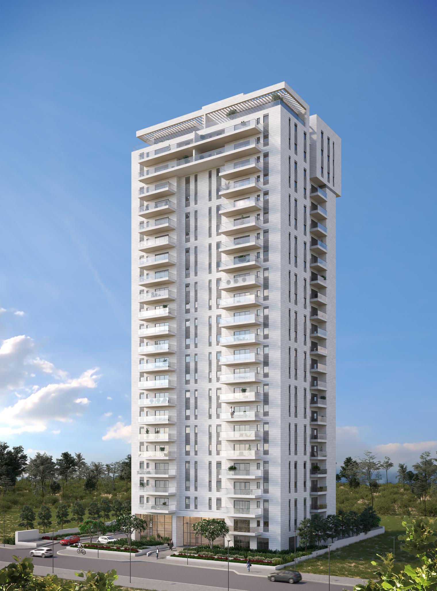 פרויקט מ. אביב יזום ובנייה – ראשל"צ – שכונת רקפות – ייעוץ ותכנון בטיחות אש להיתר – מגדל מגורים 23 קומות, 108 יח"ד + קומת מחסנים + 2 מרתפי חניה